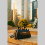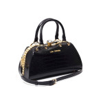 Cartera cuero sintético gofrado con broche importante a presión. Herrajes y cadenas color oro. Asa de hombro y desmontable combinada con cadena oro.