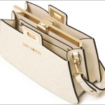 Cartera cuero sintético gofrado con dibujos . Herrajes color oro. Asa de hombro y desmontable de cuero sintético.