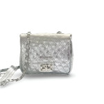 Cartera mediana de cuero napa matelassé, con broche importante y cadena combinada con cuero. Interior forrado con división para tarjetas y detalles bien pensados.