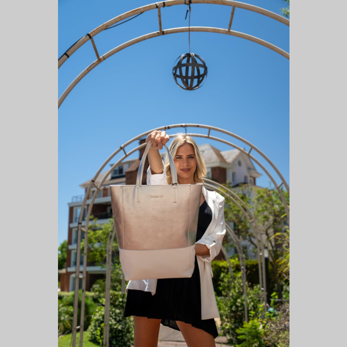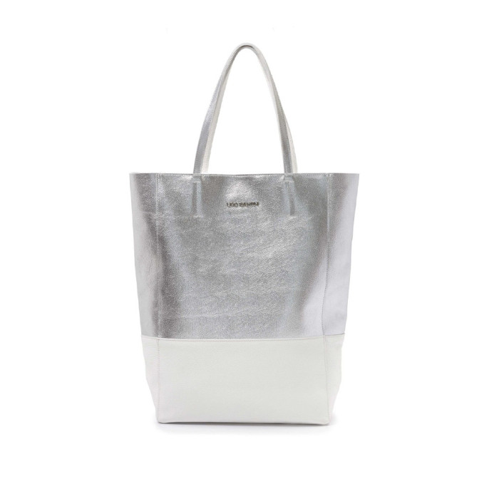 Cartera de cuero flor combinada en dos colores en frente. Cremallera metálica . Cierre en su interior. Asa de hombro en cuero flor.